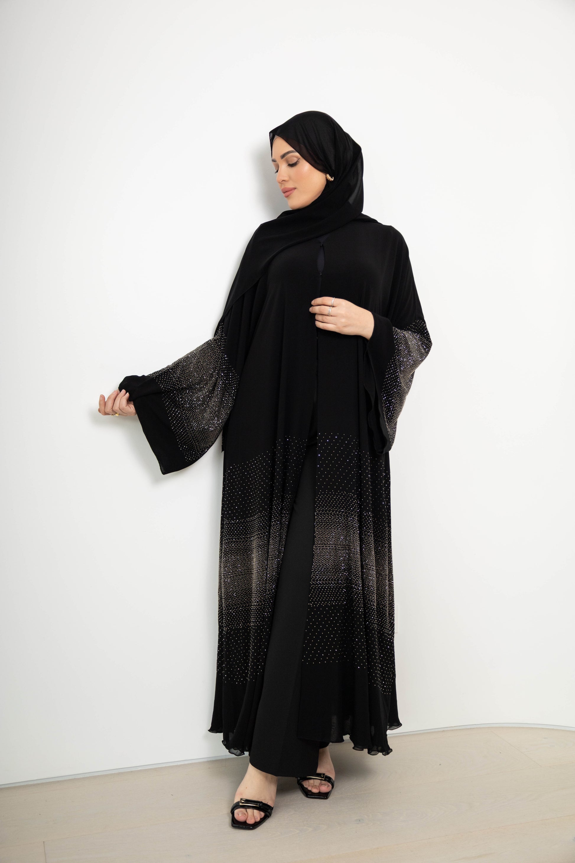 • Chiffon abaya with crystal embellishment