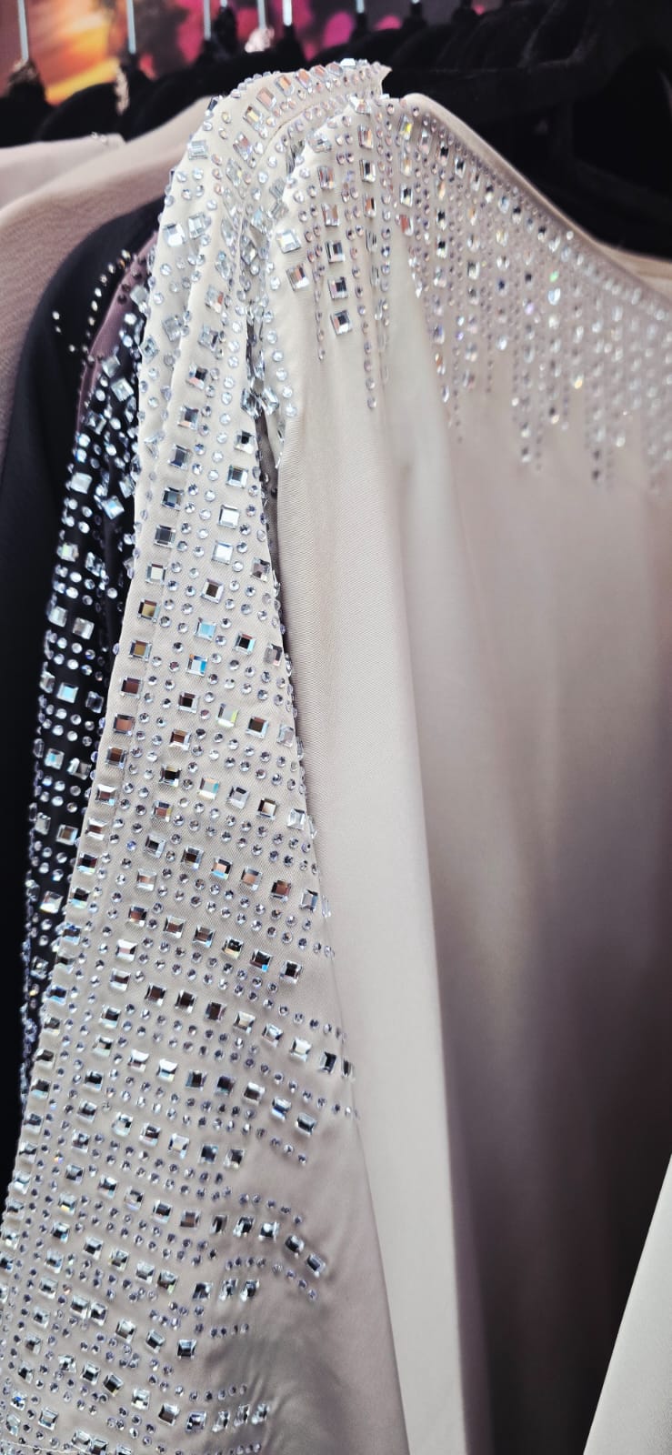These are luxurious Crystal Batwing abayas designed for an elegant, flowing silhouette with subtle glamour: