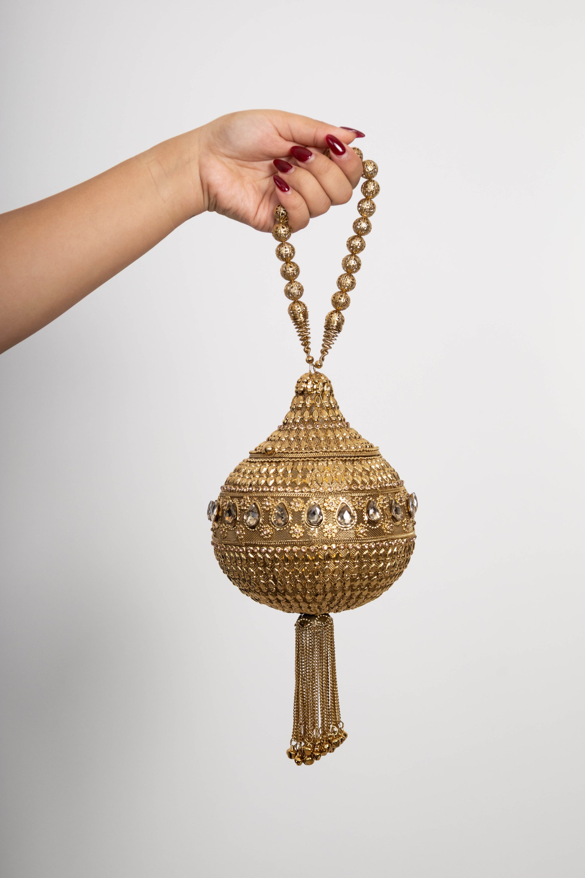 The Noora Collection is a striking trio of embellished orb-shaped clutches, blending traditional artistry with bold, statement-making design. Each piece is adorned with delicate handwork, stone inlay, and a signature tassel drop for added elegance. Whether gold, rose gold, or silver, Noora is made to captivate — perfect for bridal parties, festive occasions, or anyone wanting to elevate their look with timeless glamour.