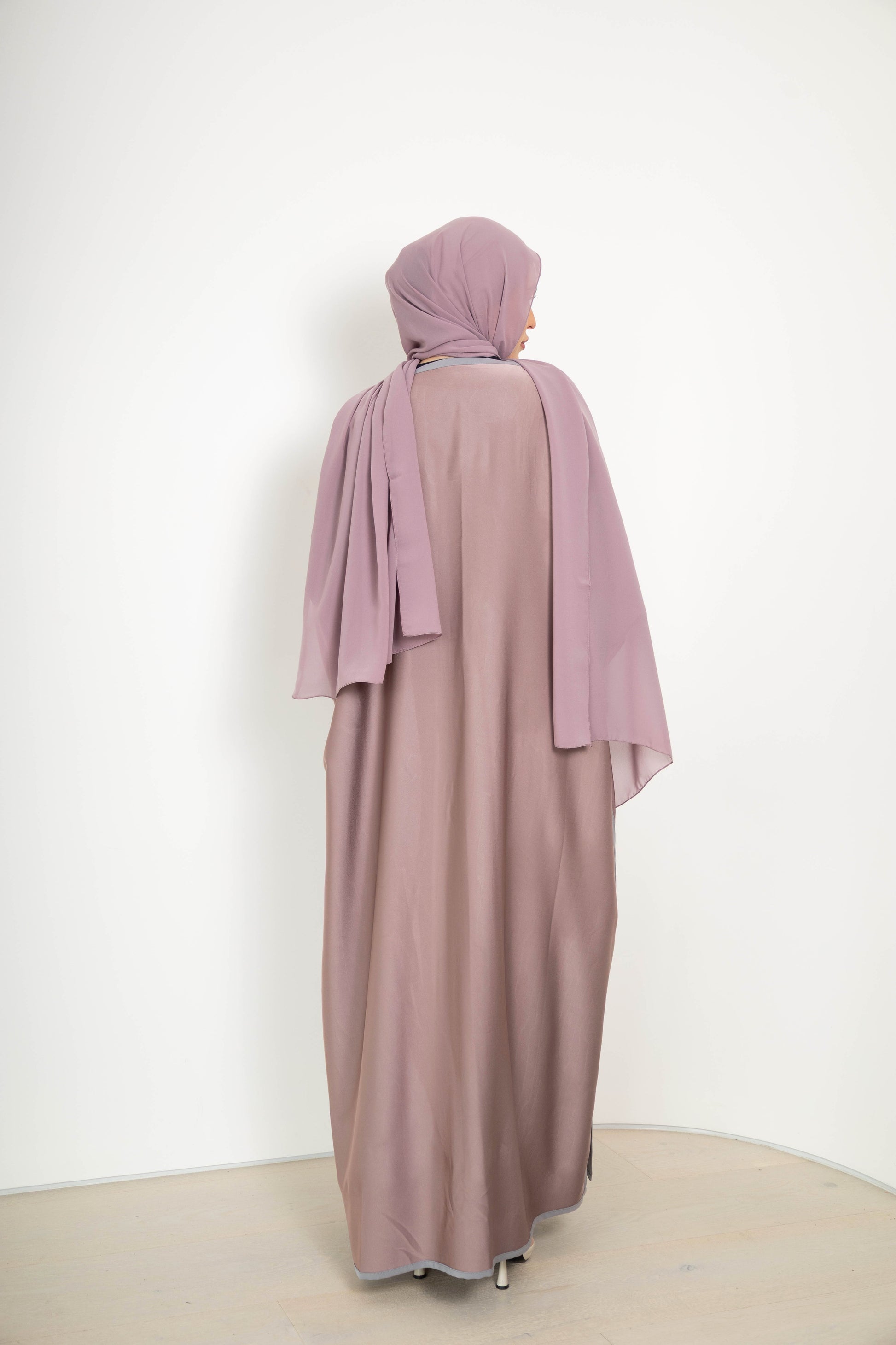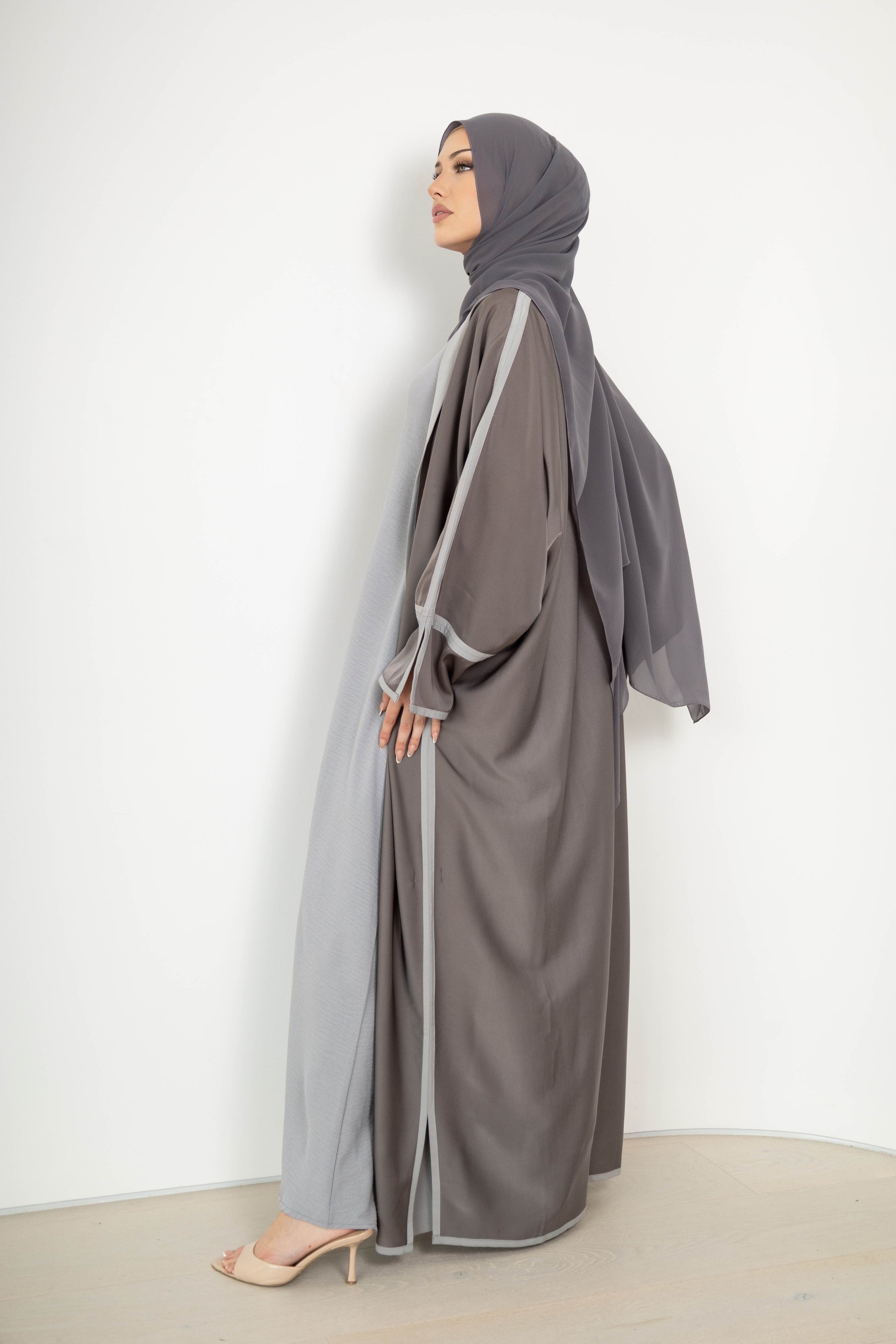 A modern take on classic modest wear, the Tasneem set is designed for versatility and elegance. This 3-piece ensemble features a double-sided open abaya with tonal contrast panels, allowing you to switch up your look effortlessly. Paired with a soft inner dress and matching chiffon scarf, each set is thoughtfully colour-coordinated for seamless styling.
